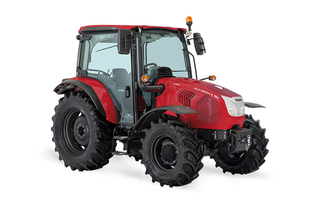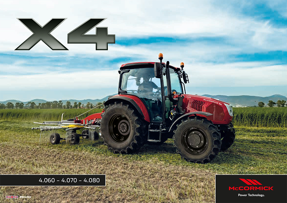 The tractors of the new McCormick X4 Series are designed with simplicity, efficiency and versatility in mind. Available in both cab and rops versions, the X4 is ideally suited to meet the needs of farmers that require a low-cost, all-round tractor. Perfect for wide-row vineyards and orchards, the X4 is equally at home ploughing, tilling and harrowing small plots of land as well as sowing and haymaking. Its excel lent all-round visibility ensures safe loader work and its com pact size allows for optimum manoeuvrability inside barns and sheds, while its stability will ensure safe operation on sloping terrain and during road transport.