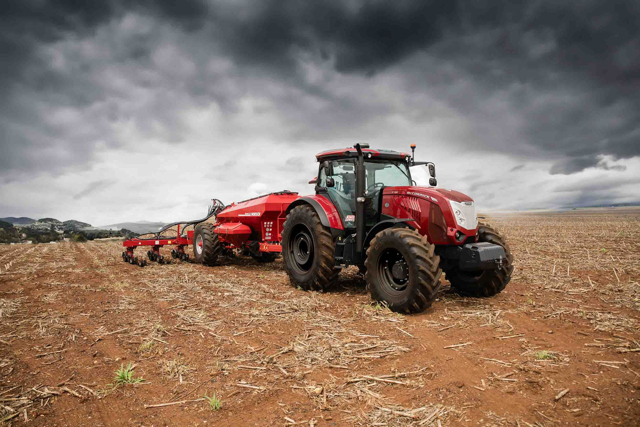 La serie X7.6 identifica los tractores X7 de 6 cilindros con motor montado en chasis de fundición. La nueva serie X7.6 ha sido diseñada para satisfacer las necesidades de las modernas empresas agrícolas y de los contratistas más exigentes. El diseño del nuevo X7.6 con sus líneas fluidas y dinámicas y la amplia cabina dotada de mandos ergonómicos e intuitivos se inspiran en el estilo automovilístico. El techo de la cabina ha sido rediseñado reposicionando los 12 faros de trabajo para garantizar una iluminación de 360° alrededor del vehículo. El capó también se ha remodelado con una línea más agresiva que mejora la visibilidad del operador. Los nuevos motores FPT N67 que equipan la nueva serie X7.6 desarrollan hasta 225 CV de potencia, garantizando una excelente capacidad de tracción junto con un bajo consumo de carburante y un mantenimiento sencillo y rápido. El circuito hidráulico con bomba de alto caudal de 160 l/min y la gestión electrónica de todas las funciones hidráulicas garantizan un funcionamiento óptimo de los aperos. Asimismo, la pantalla táctil de 12 pulgadas permite un control total del tractor y del sistema ISObus, proporcionando una conducción extremadamente precisa del vehículo en beneficio de un mayor rendimiento y de un mejor confort de marcha.
